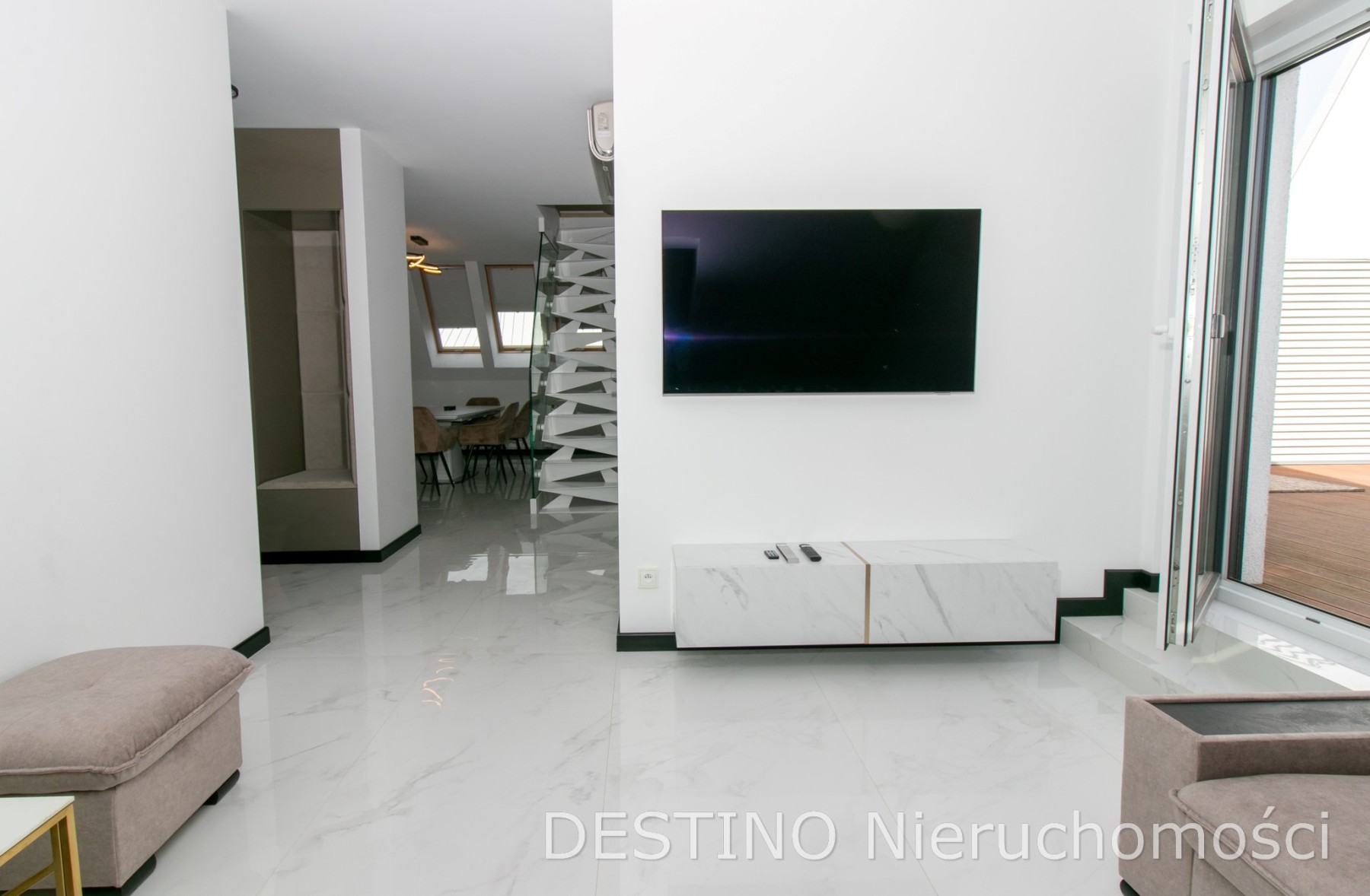 Do wynajęcia komfortowy, 3pokojowy apartament o powierzchni użytkowej ok. 70 m2 na nowym osiedlu w podkaliskiej Kościelnej Wsi przy ul. Spacerowej. Układ mieszkania: salon z wyjściem na duży taras, kuchnia z jadalnią, sypialnia, łazienka z wc, przedpokój, pokój na drugim poziomie. Do mieszkania przynależy jedno miejsce parkingowe (istnieje możliwość wynajęcia drugiego miejsca w garażu podziemnym, w sąsiednim budynku). Pomieszczenia zaaranżowane z niebywałą dbałością o każdy szczegół, wykończone w wysokim standardzie, klimatyzowane. Mieszkanie w pełni wyposażone (poza pomieszczeniem na drugim poziomie) - zgodnie z dołączonymi do oferty zdjęciami. Okolica spokojna, w sąsiedztwie inne niskie budynku mieszkalne, tereny zielone. Mieszkanie dostępne do najmu od ręki. Zachęcamy do zapoznania się z tą wyjątkową ofertą.