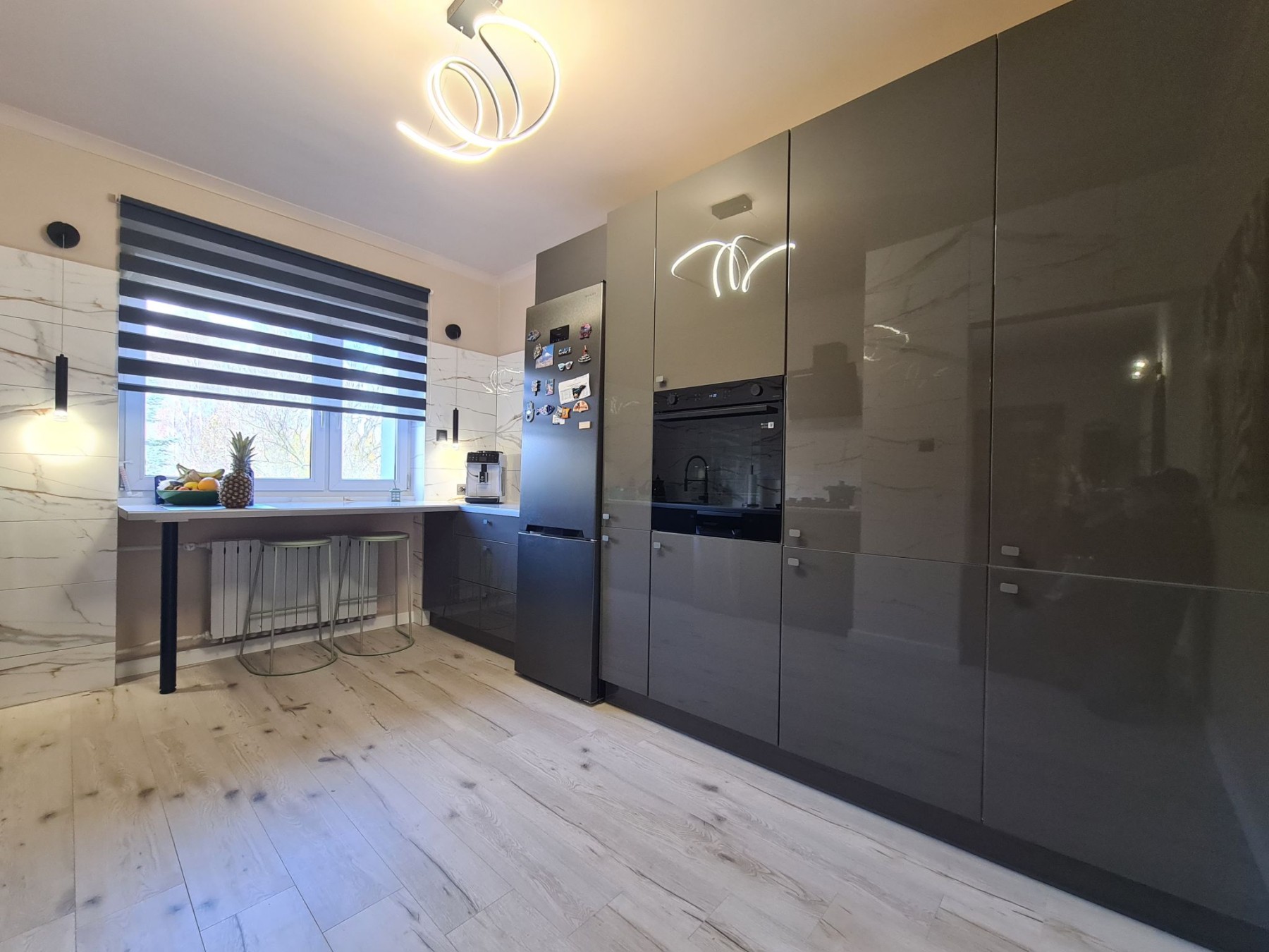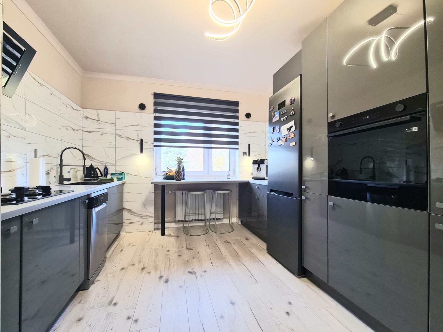 nowa kuchnia z meblami na wymiar i zabudowanym sprzętem AGD wysokiej klasy