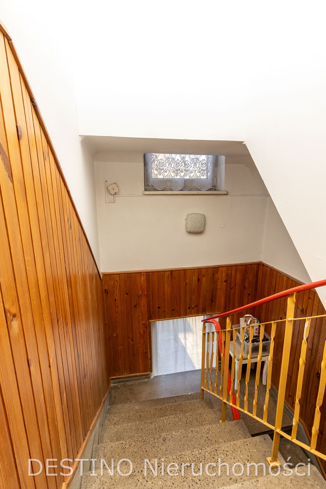 Układ budynku: parter - trzy pokoje, kuchnia, łazienka, przedpokój; piętro - trzy pokoje, kuchnia, łazienka, komunikacja.
