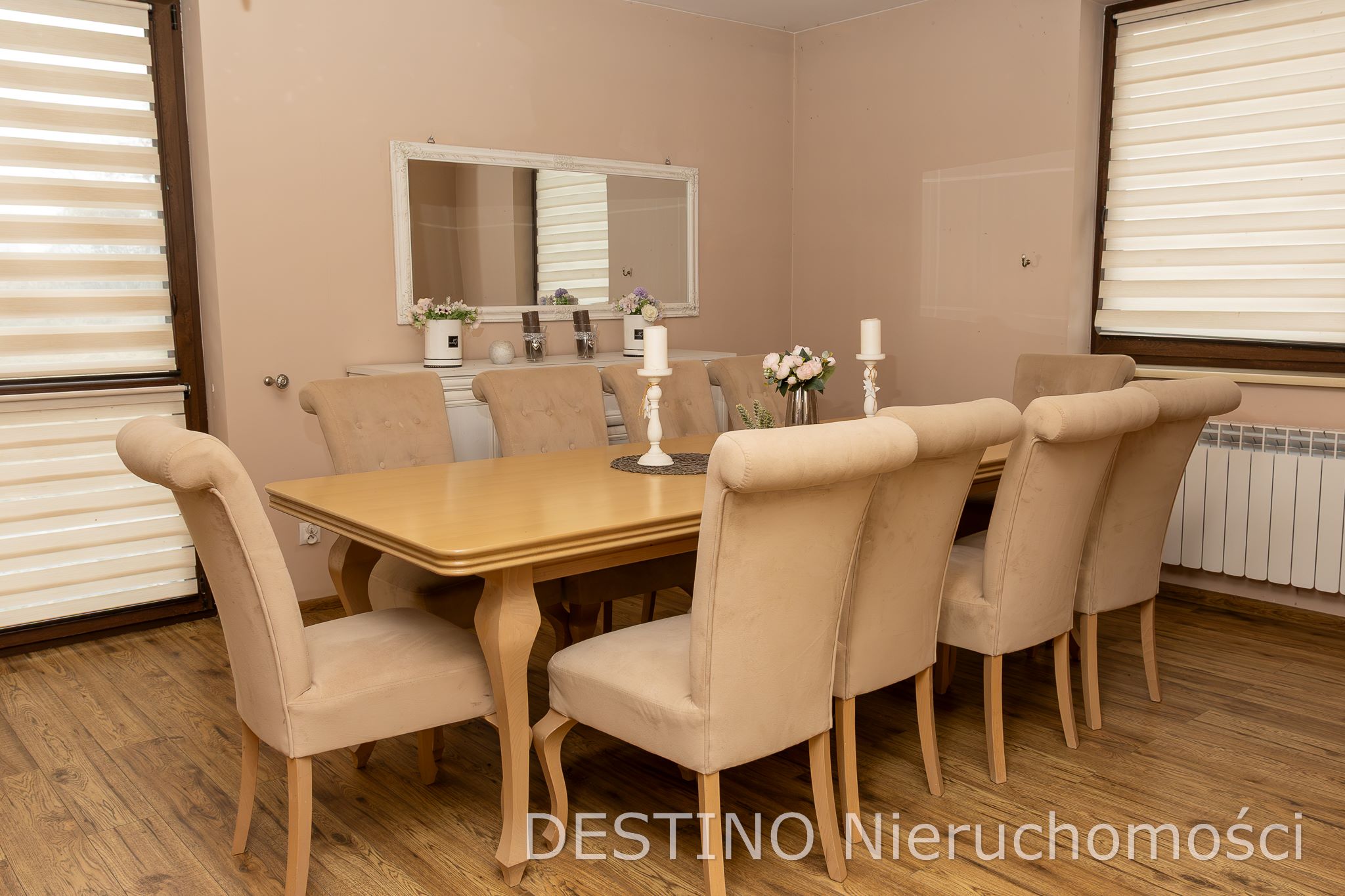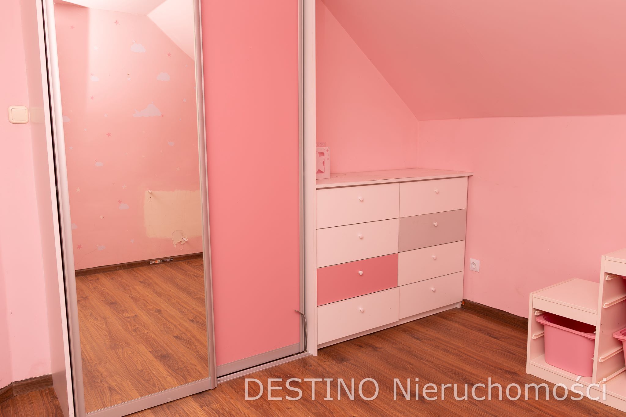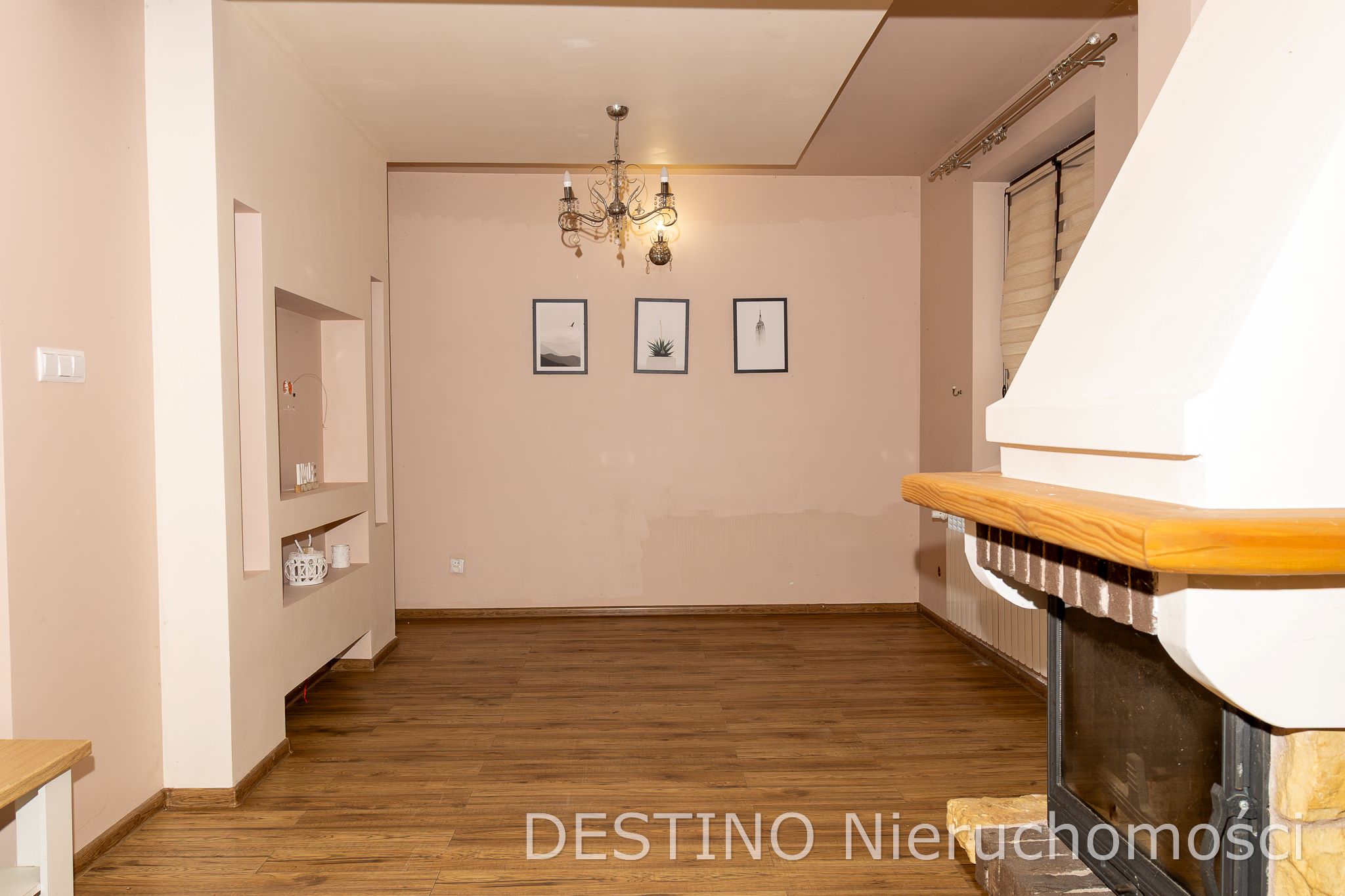 Układ domu : parter - salon z kominkiem, kuchnia, komunikacja, holl i łazienka; piętro - trzy sypialnie, łazienka, pomieszczenie gospodarcze, komunikacja. Parter budynku został całkowicie wykończony, na piętrze do wykończenia pozostaje pokój i łazienka.