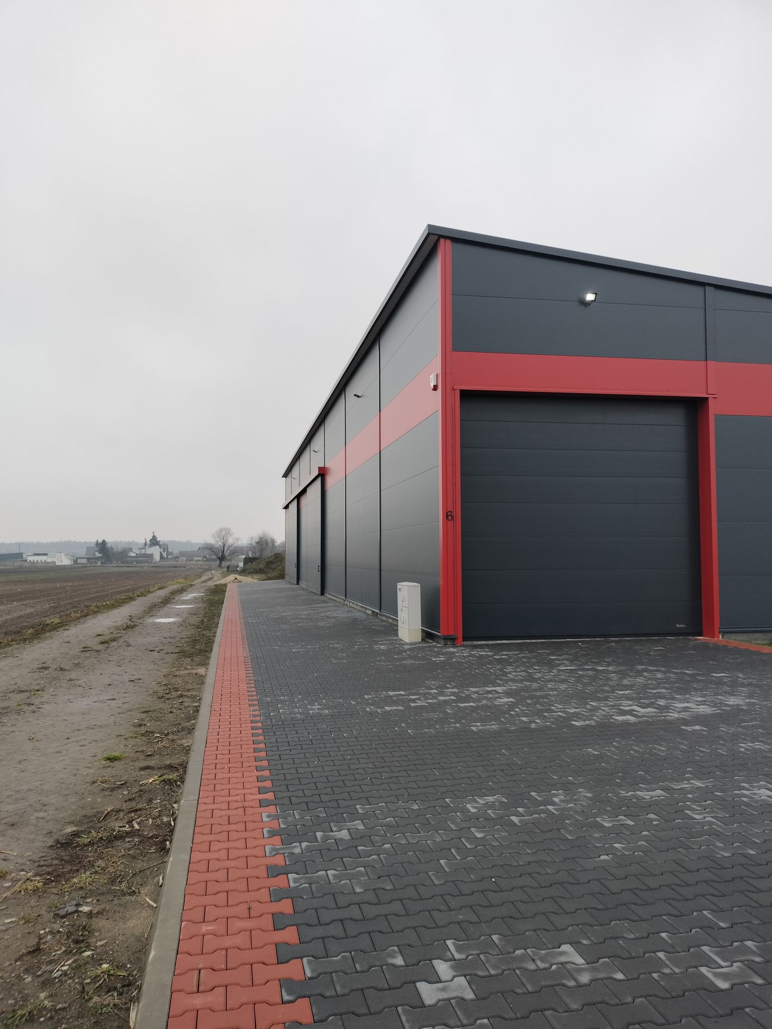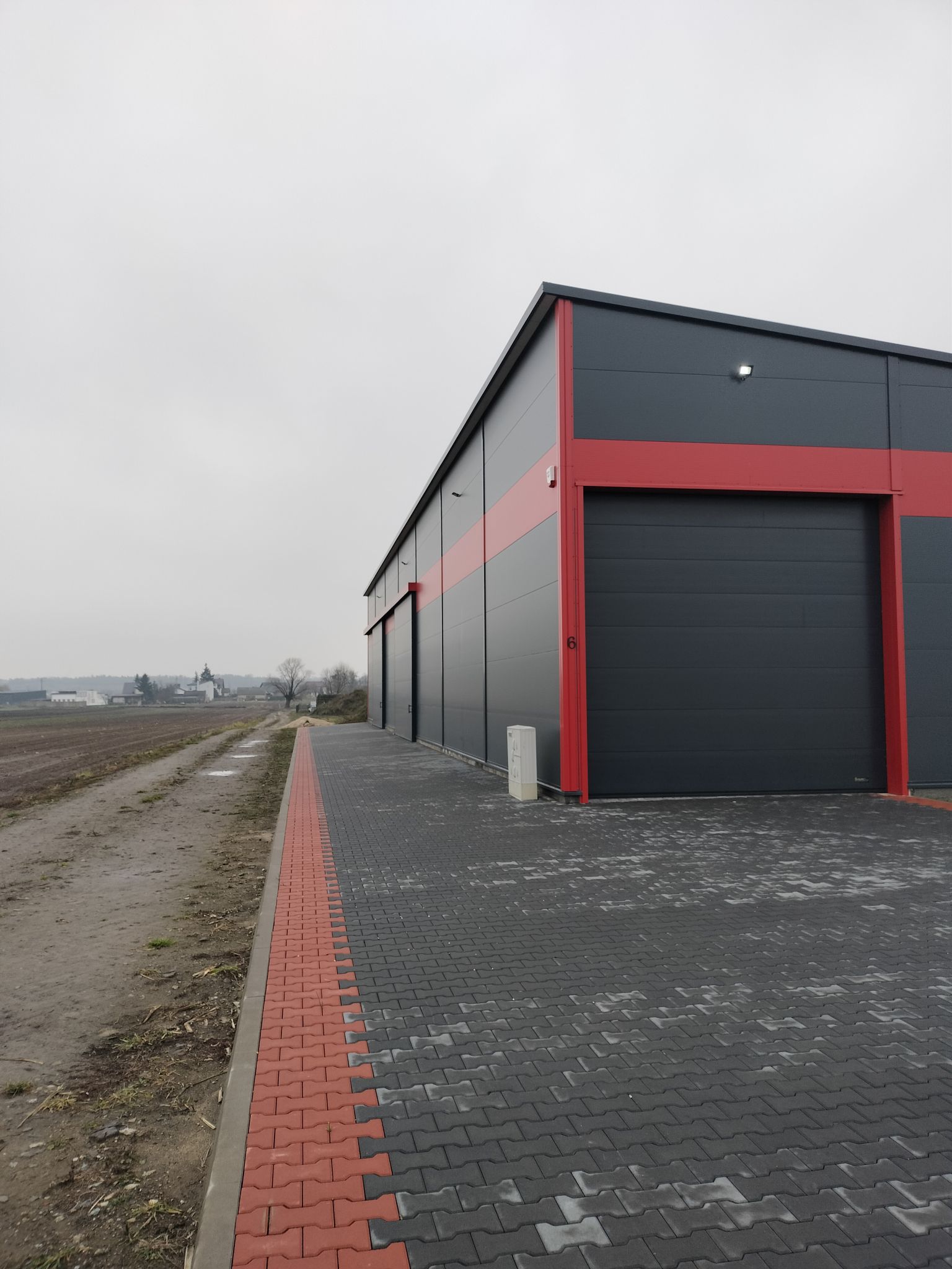 -jedna brama automatyczna oraz dwie bramy boczne przesuwne - - - teren utwardzony.