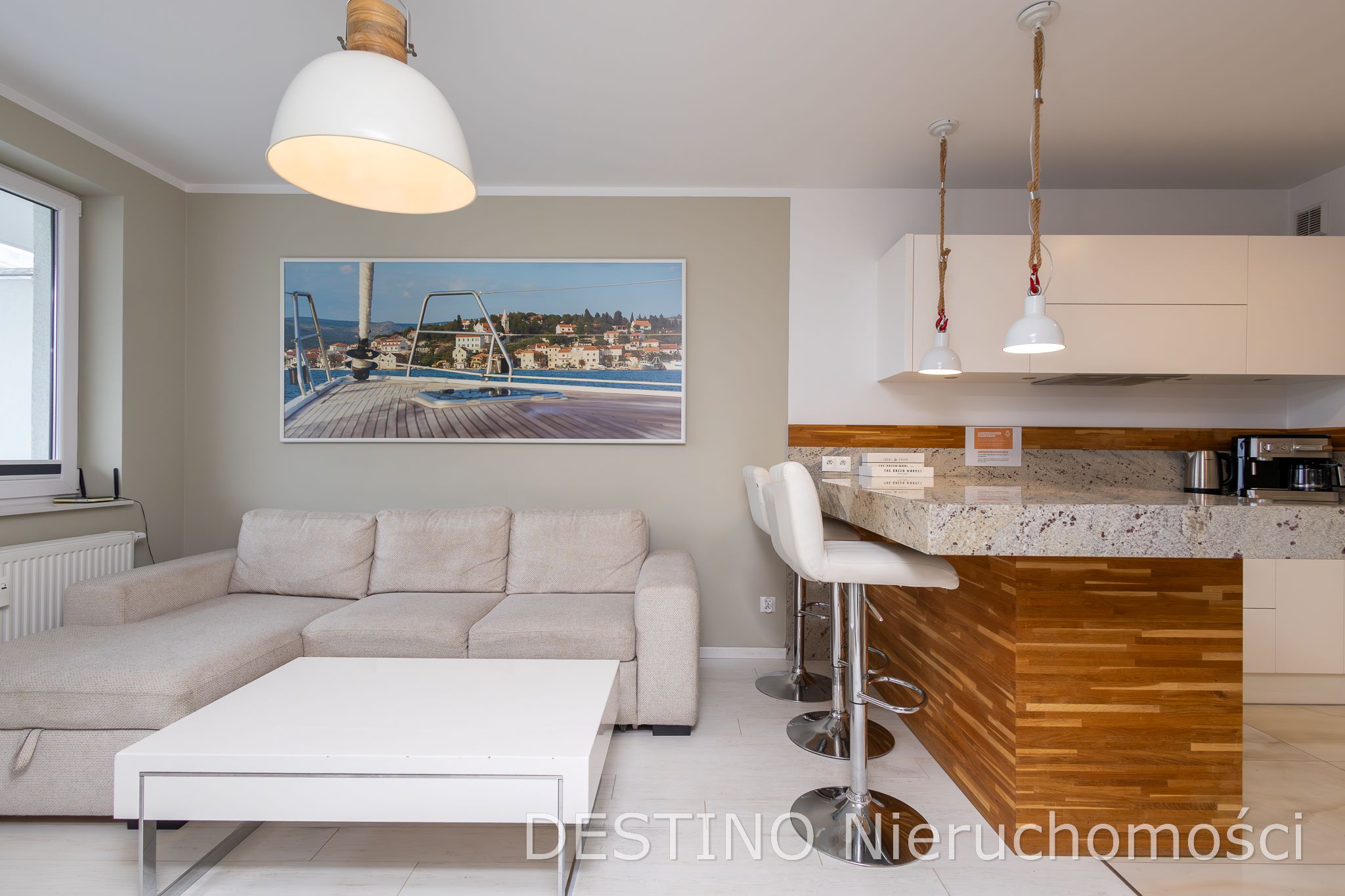 Polecamy serdecznie Państwa uwadze atrakcyjny 2pokojowy apartament przy ul. Kasprowicza w Kołobrzegu. Budynek, w którym znajduje się lokal znajduje się kilkaset metrów od plaży, przy drugiej uliczce od pasa zieleni dzielącego miasto od plaży. Lokalizacja nieruchomości jest jej niebywały atutem. Mieszkanie w pełni wyposażone, z wysokiej klasy materiałów (kuchnia od Halubczoka). Lokal może zostać sprzedany z większość wyposażenia widniejącego na zdjęciach dołączonych do oferty. Mieszkanie znajduje się na III piętrze, w czteropiętrowym bloku z windą z 2016 roku.