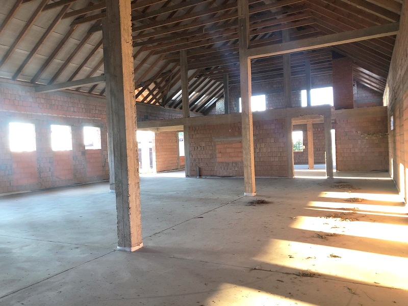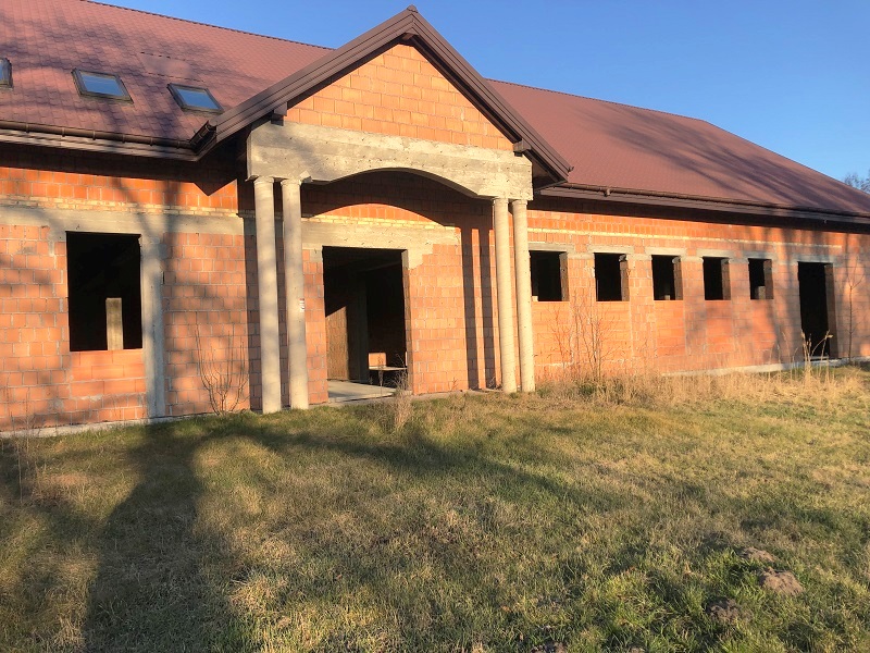 Budynek murowany z ceramiki składa się z pow. parteru 488 m2 oraz częściowe poddasze 181 m2. Dodatkowo wolnostojący murowany budynek gospodarczo-garażowy.