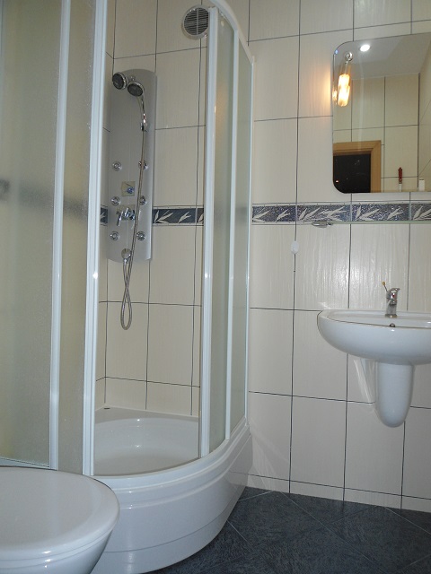 Okna plastikowe na podłogach parkiet, ciepła woda z piecyka gazowego.