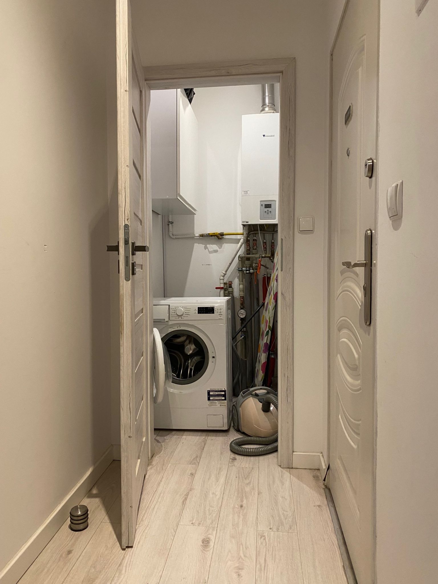 Oferta dotyczy jednego lokalu mieszkalnego ze wspólnym wejściem i korytarzem dzielonym z czterema innymi lokalami. Każde z mieszkań ma własna łazienkę, kawalerka wraz z jeszcze jednym lokalem dzielą także pralkę, znajdującą się w osobnym pomieszczeniu, z wejściem ze wspólnego korytarza. Mieszkanie jest wyremontowane, umeblowane i wyposażone w lodówkę (nie posiada aneksu kuchennego) oraz gotowe do zamieszkania. Okno wychodzi na dziedziniec, co zmniejsza słyszalność dźwięków dochodzących z ulicy.