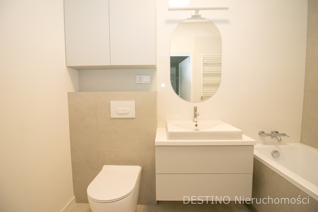 Do wynajęcia niezwykle eleganckie i komfortowe 2pokojowe mieszkanie o powierzchni 55m2 na Osiedlu Wzgórza Kalisza. Mieszkanie mieści się na V piętrze, w nowym, sześciopiętrowym bloku z cegły. Układ mieszkania: salon z aneksem kuchennymi ( lodówka, zmywarka, płyta indukcyjna, piekarnik) wyjście na taras, sypialnia, łazienka z wc ( pralka), korytarz. W salonie komfortowa sofa, stół jadalniany z krzesłami, sypialnia z łóżkiem małżeńskim, w holu szafa z lustrem. Mieszkanie gustownie wykończone i wyposażone w sprzęty wysokiej jakości. Do mieszkania przynależy miejsce parkingowe zewnętrzne oraz komórka lokatorska. Lokalizacja na spokojnym osiedlu Tyniec z bliskim dojazdem do Centrum, w pobliżu szkoła podstawowa, przedszkole oraz Park Miejski i tereny sportowo rekreacyjne.
