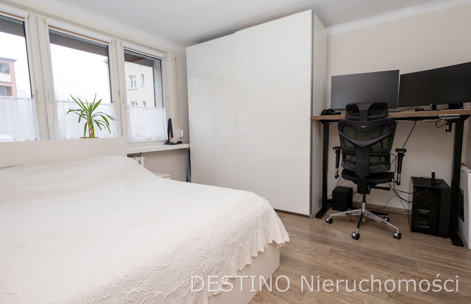 Układ mieszkania: przestronny salon (z wyznaczoną strefą jadalnianą), dwie niezależne sypialnie, oddzielna kuchnia, łazienka, wc, przedpokój. Do mieszkania przynależy piwnica w przyziemiu budynku. W dwóch pokojach i przedpokoju pojemne szafy przesuwne. Mieszkanie z dużym potencjałem, pozwala również na przearanżowanie na 4pok. nieruchomość.